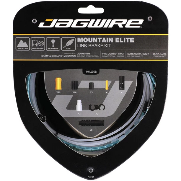 - livraison complémentaire : 1 x câble intérieur Elite Ultra-Slick de 2350mm en acier inoxydable, poli miroir, pour frein arrière, 25 x segments en aluminium, 2 x embouts, 2 x embouts adaptateurs à relier à la gaine extérieure du câble de frein de 5 mm