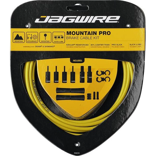 L’ensemble de traction Mountain Pro convainc par un plus exceptionnel en termes de performance et d’apparence. Avec le revêtement Slick-Lube, les câbles revêtus de téflon permettent une réduction optimale des frottements. En parallèle, les gaines extérieures des câbles de frein sans compression et renforcées par du Kevlar assurent un freinage direct et puissant. Comme le volume de livraison comprend toutes les pièces nécessaires, les ensembles de traction Mountain Pro sont également très faciles à assembler. Toutefois, contrairement à l’ensemble Road Pro, les câbles de changement de vitesse et de frein sont proposés séparément.