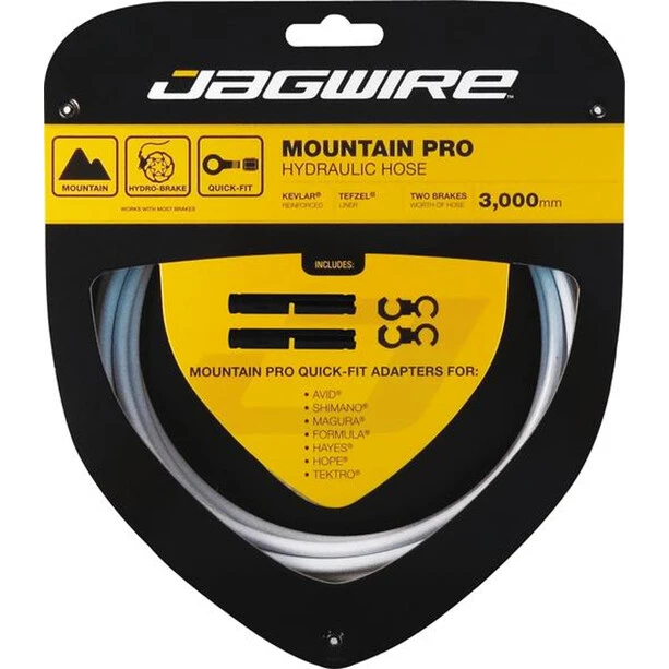 Les conduites de frein Pro-Hydraulic sont basées sur une technologie éprouvée du secteur de la moto. Le revêtement en Kevlar de la gaine Tefzel empêche de manière fiable les dommages au câble dus au développement de chaleur et aux pressions de freinage extrêmes. Chaque conduite de frein possède un connecteur universel du côté de l’étrier pour les adaptateurs Jagwire Quick-Fit. Pour le montage, il suffit de couper les conduites de frein à la bonne taille et de les raccorder avec l’adaptateur Quick-Fit approprié.